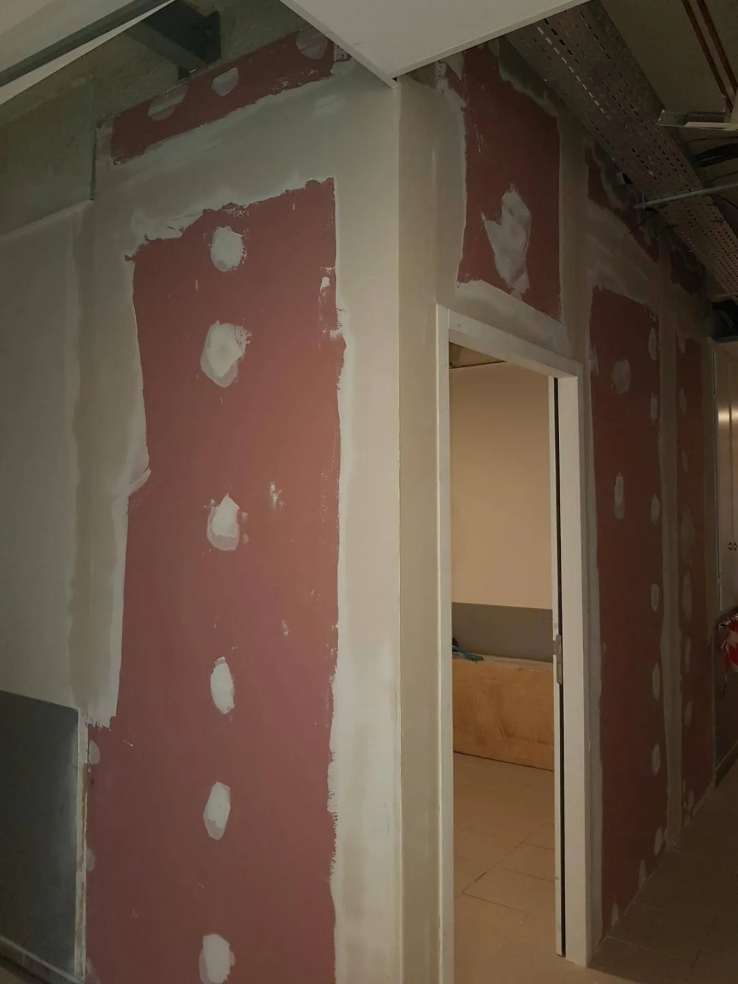 Pose de placo style avec isolation thermique et phonique par laine de verre.