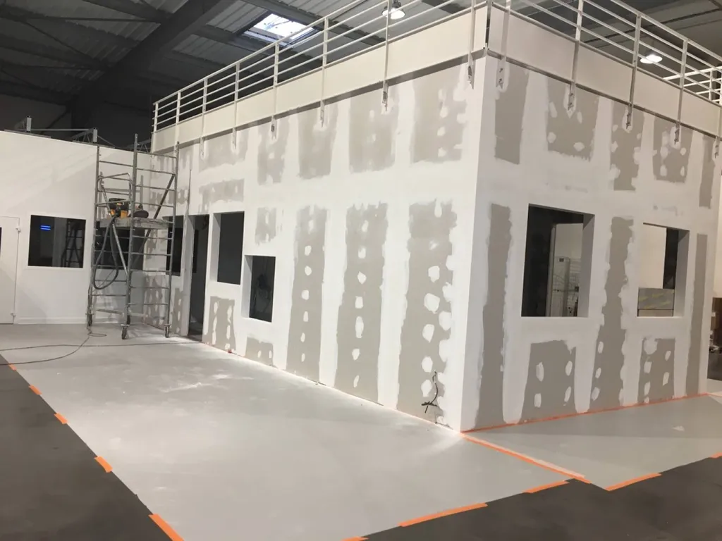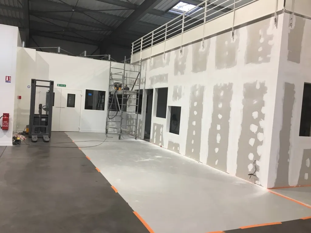 Des cloisons, peinture, menuiseries, portes et fenêtres, électricité, nous avons créé entièrement un local adapter pour accueillir toute une équipe technique.