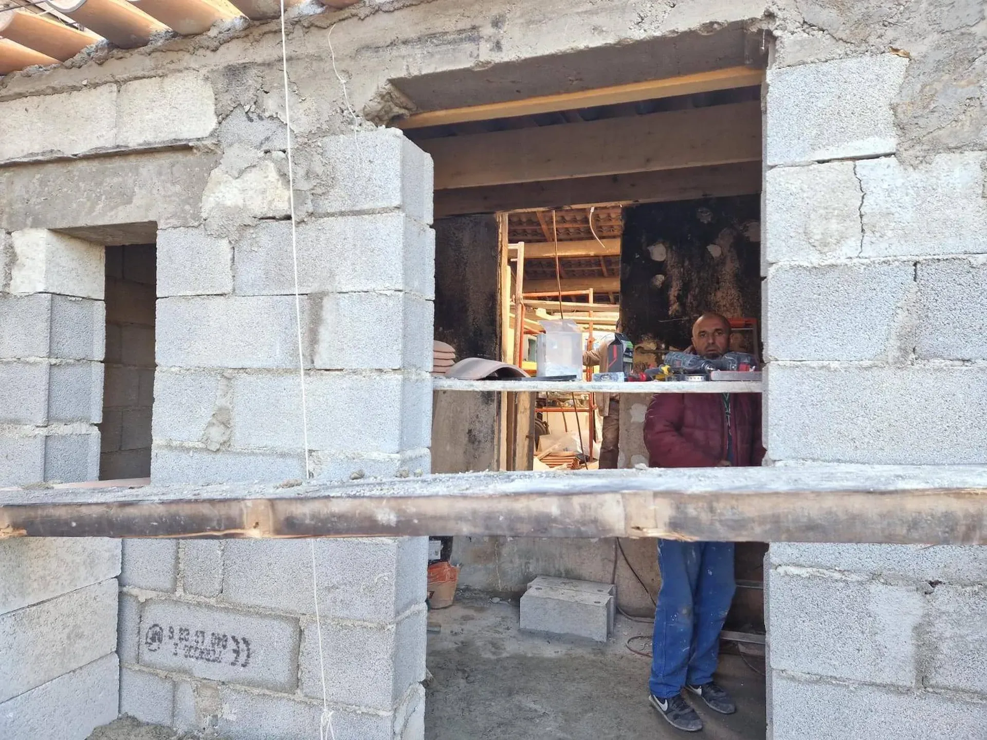 La maison sinistrée par l'incendie à notre arrivée